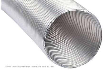 Duct Pipe With Cowl-Chimney Exhaust Pipe 5 Inch Dia with Cowl Cover/End Cap (Aluminum, Extendable Up to 10 Feet)