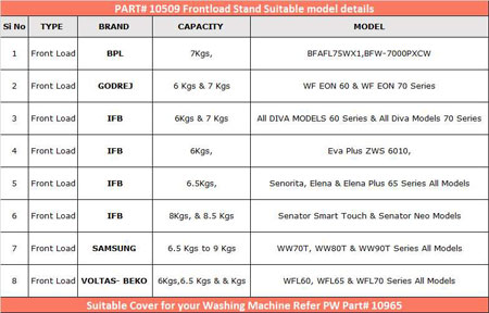 Trolley-Heavy duty polycoat stand or trolley for Front Loading Washing Machines 6 to 9 Kgs. capacity models. (Check the Brand, Capacity and Models Chart photo for your washing machine fitment